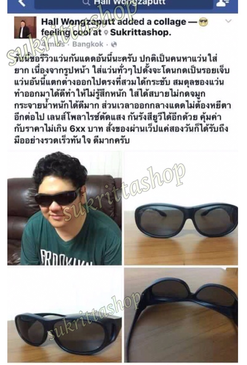 และ UVB (UV400) ทำให้กันการระคายจากแสงแดดได้ดี นอกจากนี้แว่นนี้ยังสามารถใส่ทับแว่นสายตาได้ด้วย